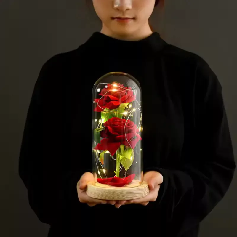 Ewige Rose mit LED-Lampe in Glasglocke – Romantisches Geschenk und Dekoration