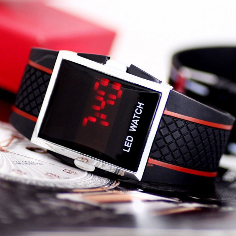Dank ihres Unisex-Designs ist sie sowohl für Frauen als auch Männer geeignet. Ausgestattet mit einem rechteckigen LED-Display. Die Uhr enthält die Batterie. Mit Schnalle befestigbar. Wasserbeständigkeit: spritzwassergeschützt.