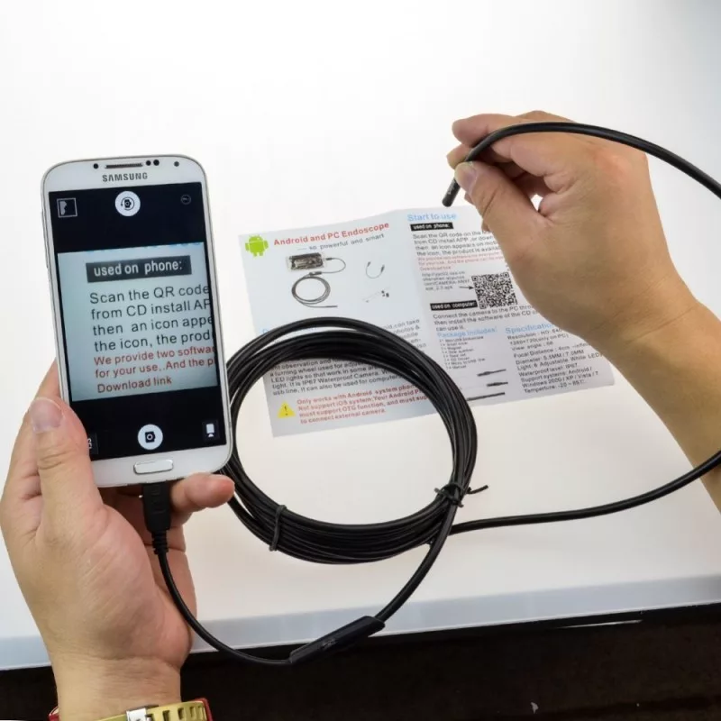 Außerdem benötigst du neben dem Gadget nur dein Telefon. Überprüfe vor der Bestellung, ob dein Handy OTG-kompatibel ist, da dies unerlässlich ist, um das Bild der Endoskopkamera zu sehen. Um es dir leichter zu machen, kannst du dies einfach mit der App „USB OTG CHECKER“ herausfinden.
