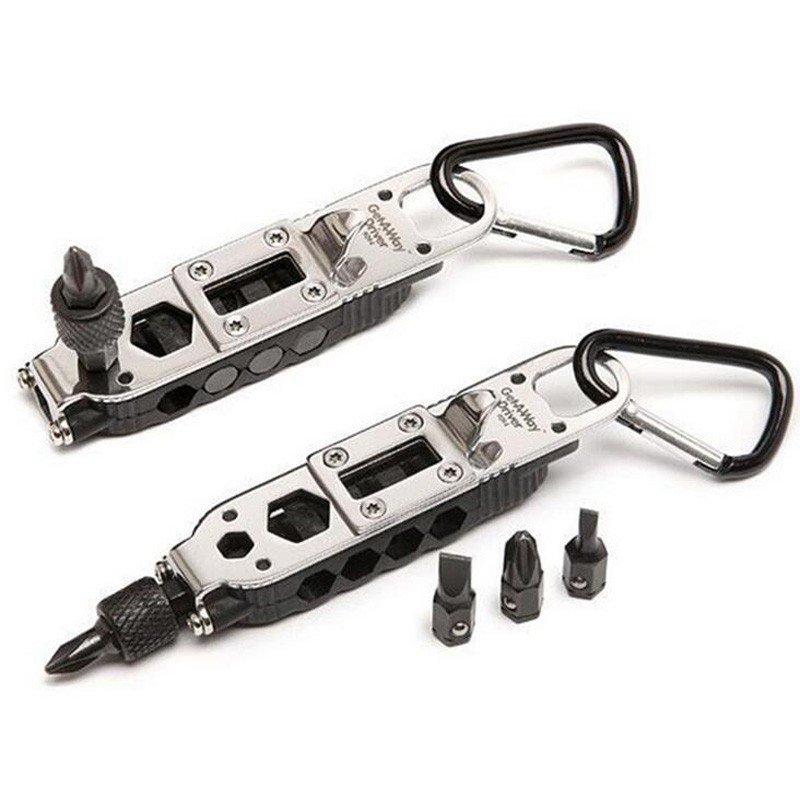 Wenn du auf eine Wanderung gehst und nicht den ganzen Werkzeugkasten mitnehmen möchtest, dann lass dieses Gadget auf keinen Fall zu Hause! Klein, kompakt, mit 4 verschiedenen Schraubendreherköpfen, Flaschenöffner und LED-Licht wird es dir sicher helfen!
