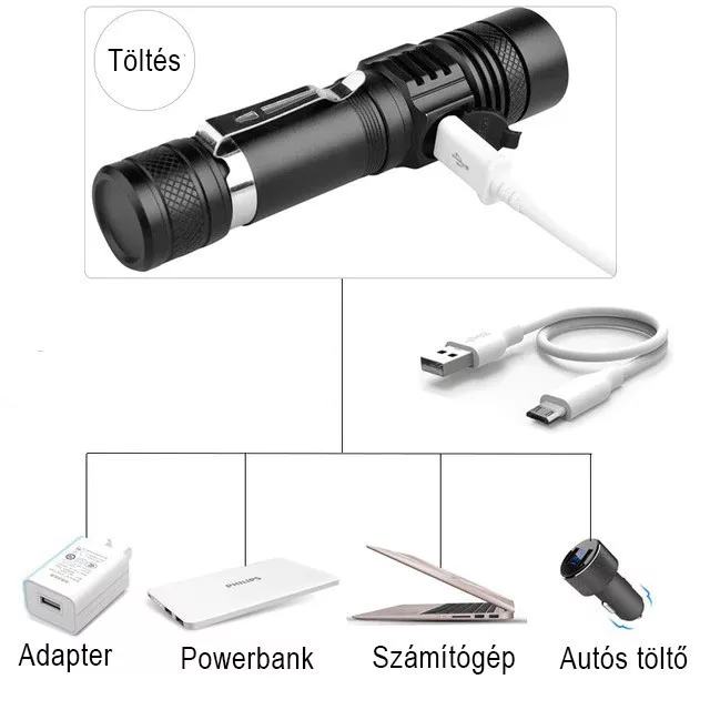 1 Stück Szuper nagy fényű zseblámpa (Akku nicht enthalten)