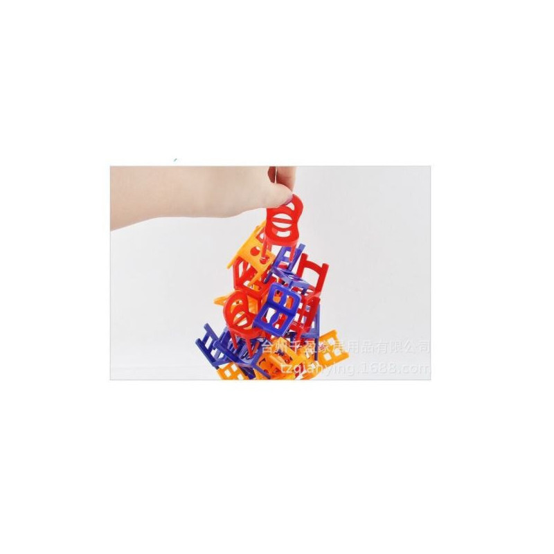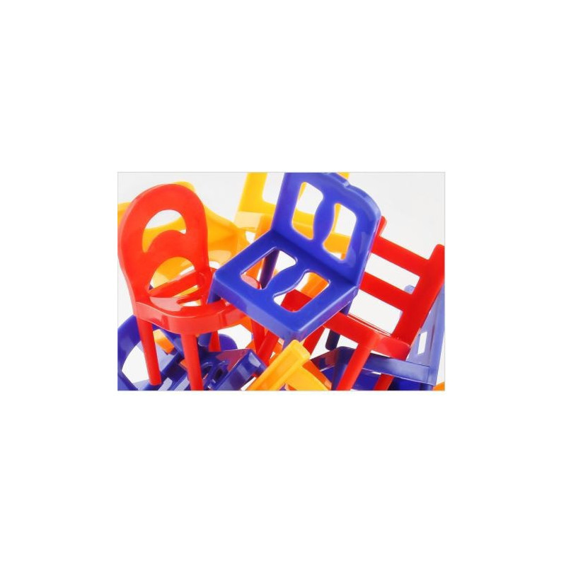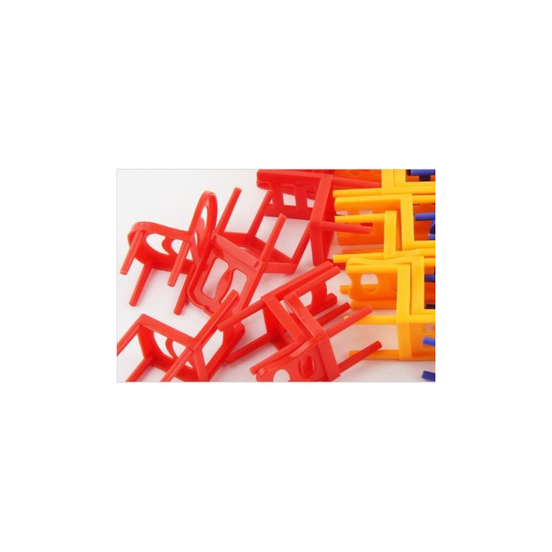 Perfekt für jede Party oder Zusammenkunft! Der Einstieg ist einfach, und das Spiel bringt jede Menge Spaß. Auf jeder ebenen Fläche leicht aufzubauen. Ziel des Spiels ist es, die Stühle zu stapeln, ohne dass sie umfallen. Es gibt so viele verschiedene Möglichkeiten zu stapeln, dass kein Spiel dem anderen gleicht... und es wird noch schwieriger, wenn man ein wenig angeheitert ist! Zu Beginn verteilt ihr die verschiedenfarbigen und -förmigen Stühle auf der Spielfläche. Legt die Anzahl der Runden fest, platziert einen Stuhl auf der Spielfläche und beginnt abwechselnd einen weiteren Stuhl auf den Stapel zu legen.
