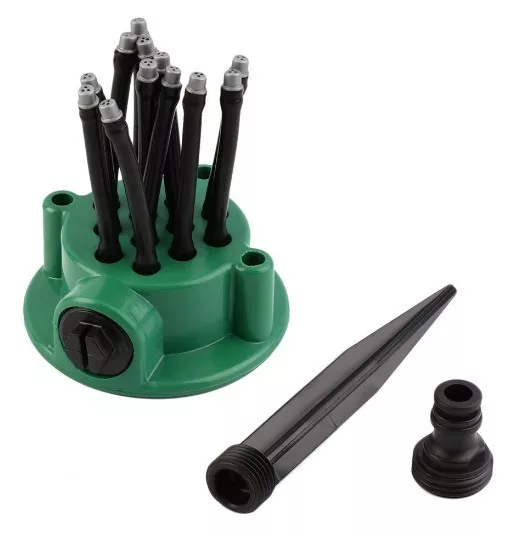 Dank der 12 individuell einstellbaren Sprühköpfe kannst du die Bewässerung ganz einfach auf die gewünschte Fläche einstellen. Du kannst es in Gärten jeder Form verwenden und sparst eine Menge Wasser, indem du die Wasserstrahlen immer genau dorthin lenkst, wo sie gebraucht werden.