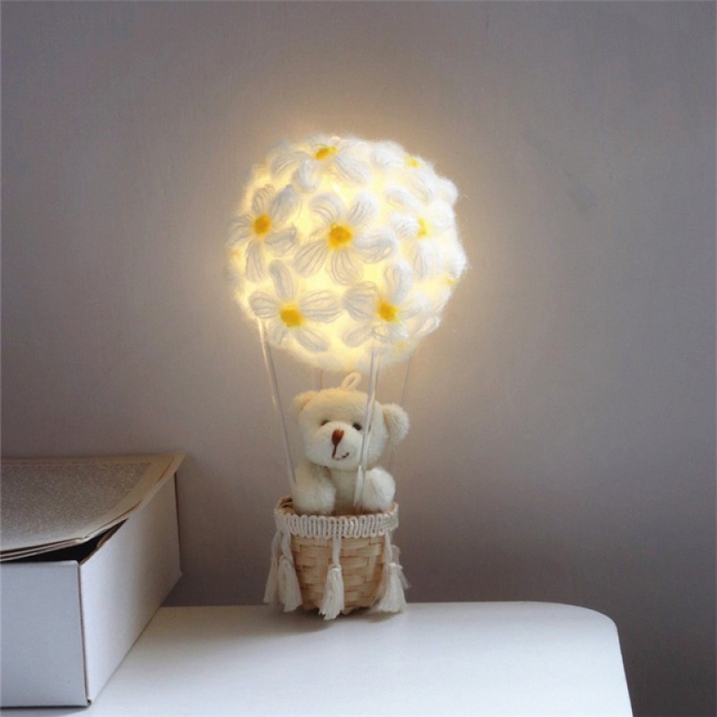 Blumen-Heißluftballon-Nachtlicht mit Hase Blumen-Heißluftballon-Nachtlicht mit Hase
