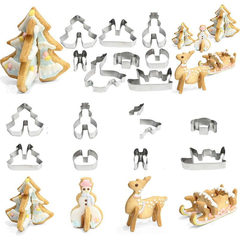 3D Weihnachtsplätzchen-Ausstecher Set, 8 Stück