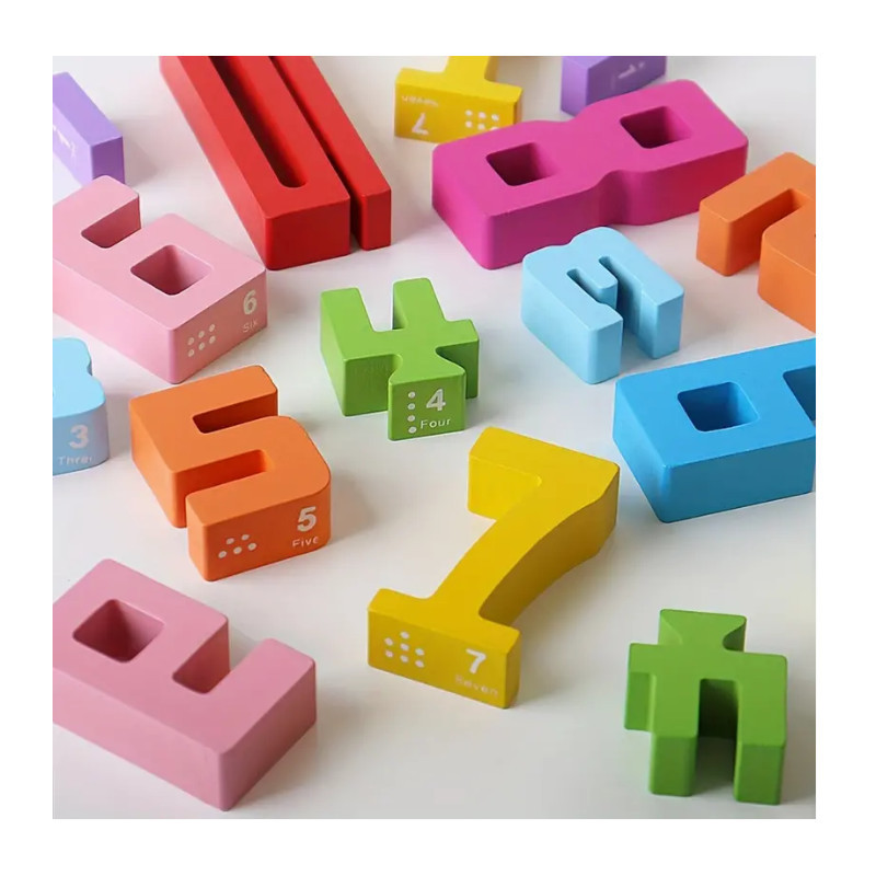 Das Set der Zahlenbausteine enthält zehn Zahlen (0-10) und fünfzehn Karten. Mit genügend Zahlen und Symbolen kann dein Kind mehrere Kartenmuster gleichzeitig lernen. Speziell für Kinder entwickelt, fördert es das Zählen, mathematische Fähigkeiten und die Hand-Auge-Koordination.