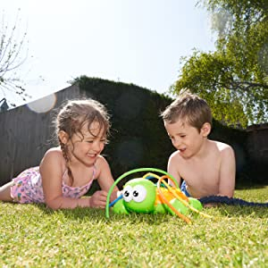 Die Nutzung ist kinderleicht, schließe das Spielzeug einfach an einen Standard-Gartenschlauch an, öffne das Wasser und genießt das erfrischende Nass, das an heißen Sommertagen für jeden angenehm ist.