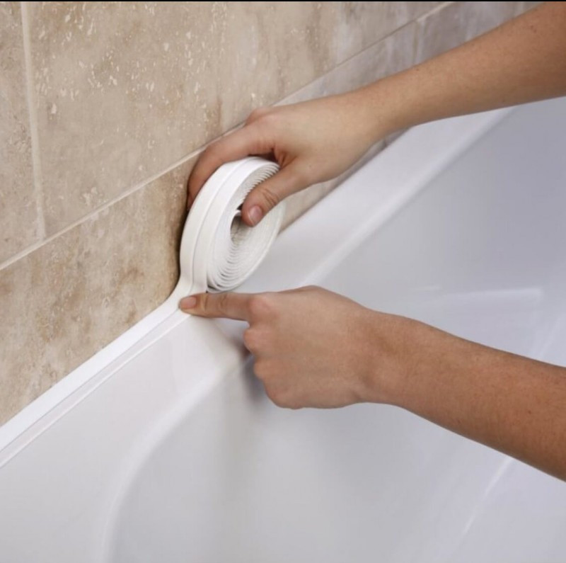Du kannst das Band sowohl an den Berührungspunkten von Spüle, Badewanne als auch Dusche mit der Wand verwenden, um eine schützende Schicht zwischen den betroffenen Oberflächen zu bilden.