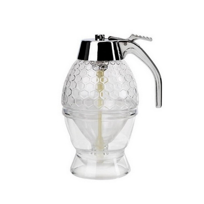 Das Äußere des Spenders ist niedlich und bienenwabenförmig, was deiner Küche eine besondere Note verleiht. Der Spender besteht aus drei Teilen: dem Spender selbst, einem Standfuß und dem Deckel. Der Standfuß ist multifunktional; du kannst den Spender darin aufbewahren und wenn du etwas warmes Wasser hineingießt, wird der Honig im Behälter flüssiger. Das verhindert die Kristallisation und verbessert die Qualität. Zum Spender gehört auch ein Silikonverschluss, mit dem du den Boden des Spenders sicher verschließen kannst.