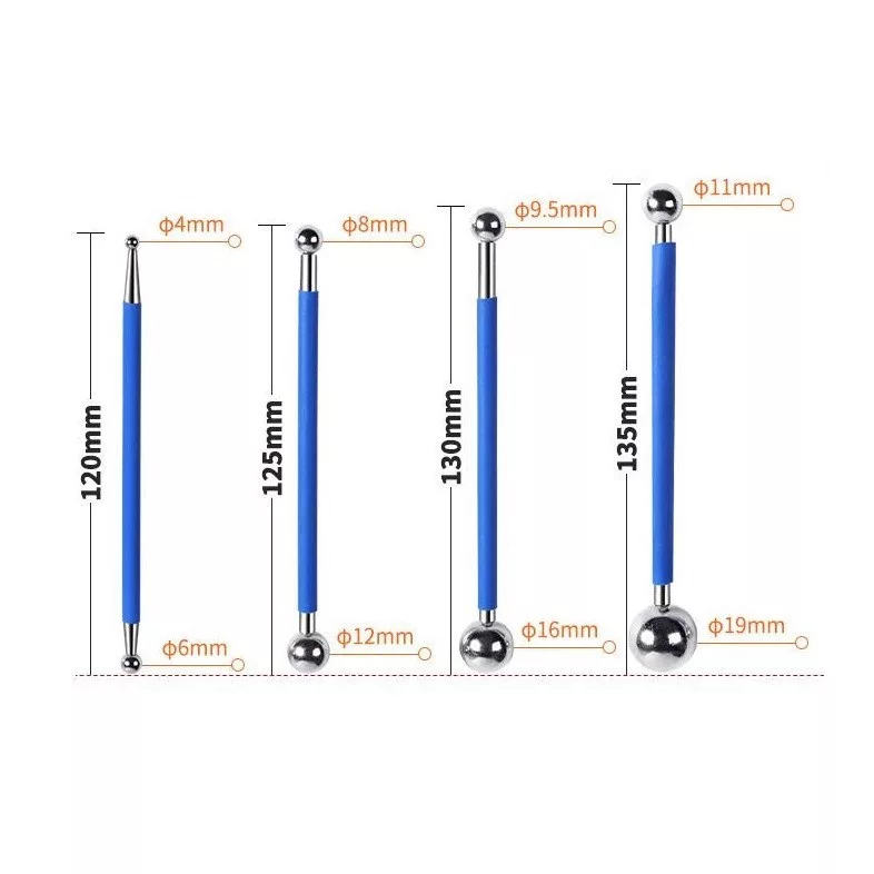 Kugelgrößen: 4 und 6 mm, 8 und 12 mm, 9.5 und 16 mm, 11 und 19 mm