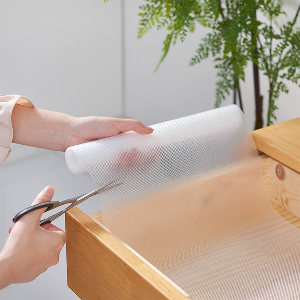 Das Produkt besteht aus rutschfestem Material, sodass die Töpfe garantiert nicht darauf herumrutschen. Außerdem lässt sich die Folie einfach auf die gewünschte Größe zuschneiden, sodass du sie mühelos an die Maße deiner Schublade oder deines Regals anpassen kannst.