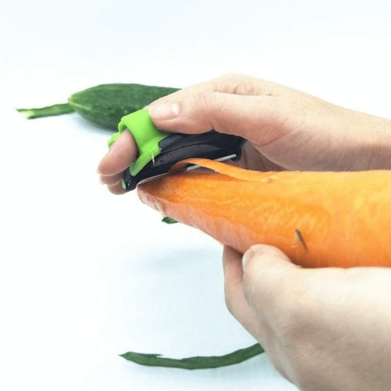 Dank seines speziellen, fingerlosen Designs kannst du die Schale von Gemüse und Obst sicherer entfernen als je zuvor!