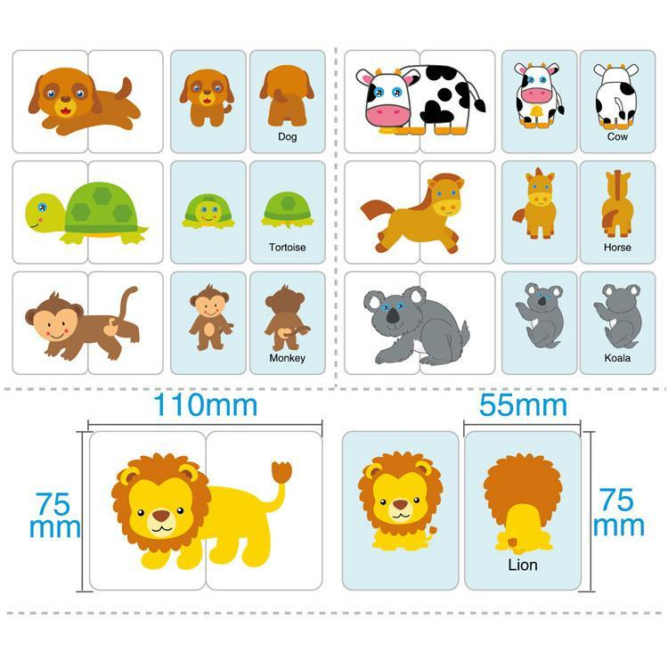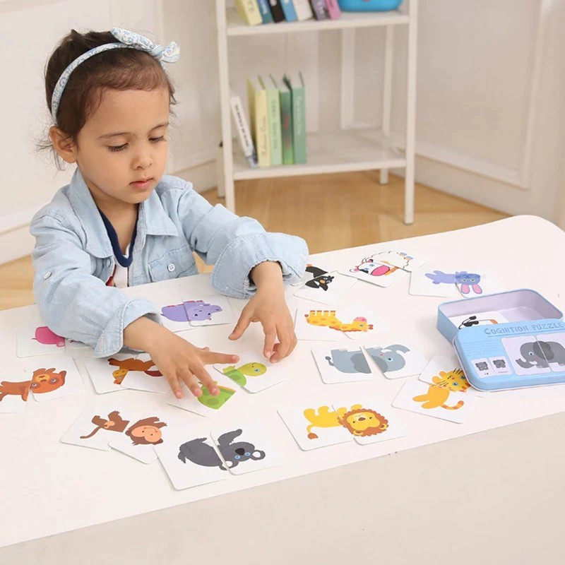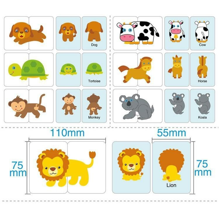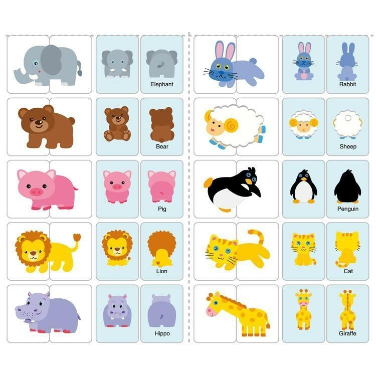 Ziel des Spiels ist es, dass dein Kind für jede Karte das passende Paar findet und daraus das richtige Bild zusammensetzt.