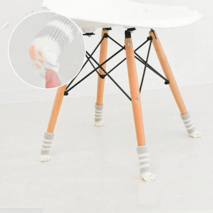4 Stück Stuhlbein-Schutz mit Katzenpfoten-Muster