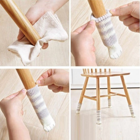Das elastische Material ermöglicht es dir, es auf die meisten Stuhl- oder sogar Tischbeine zu ziehen.