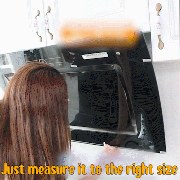 Nimm eine Schere und schneide ein passendes Stück vom Fettfilter ab, dann platziere es auf deiner Dunstabzugshaube.