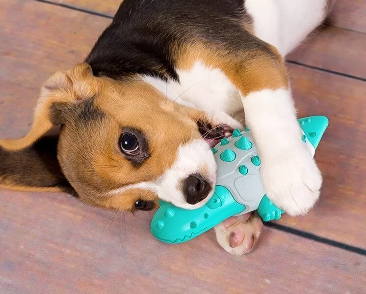 Dieses doppelwandige Krokodil-Kauspielzeug massiert gleichzeitig sein Zahnfleisch und reinigt seine Zähne, und es bietet ihm zudem großen Spaß.