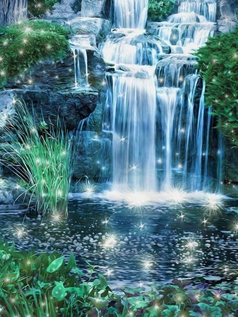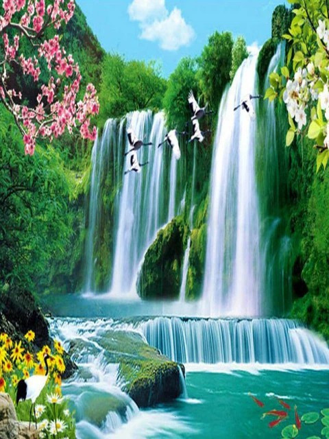 Wasserfall mit Vögeln Wasserfall mit Vögeln
