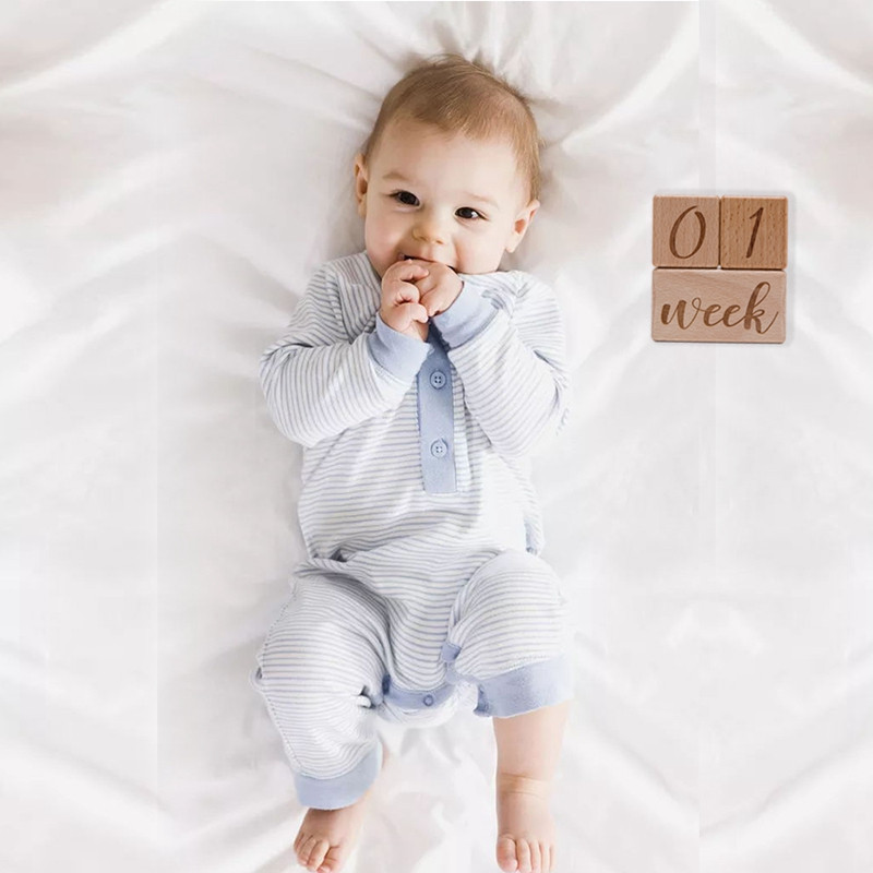 Die aus Holz gefertigten Baby-Meilensteine sind ein ewiges Andenken an die Anfänge der Kleinkindzeit und die besonderen Momente, wenn dein Kind sich das erste Mal dreht, aufsetzt oder zu laufen beginnt.