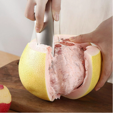 Auch härtere Schalen sind kein Problem, da ein Ende speziell für diesen Zweck entwickelt wurde, zum Beispiel beim Schälen von Orangen oder Grapefruits.