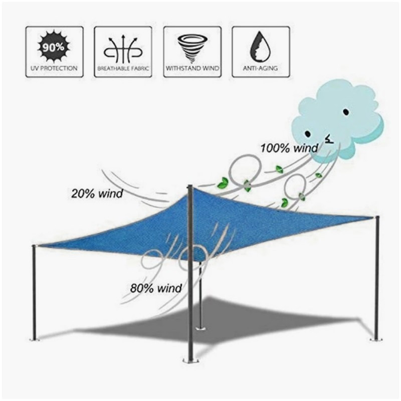 Dieser Schattenspender aus synthetischen Kunststofffasern ist perfekt dafür geeignet. UV- und wetterbeständig, sodass du ihn bedenkenlos auch bei extremem Wetter draußen lassen kannst. Er filtert nicht nur das Sonnenlicht, sondern auch den Wind und kann somit auch als Windschutz dienen.