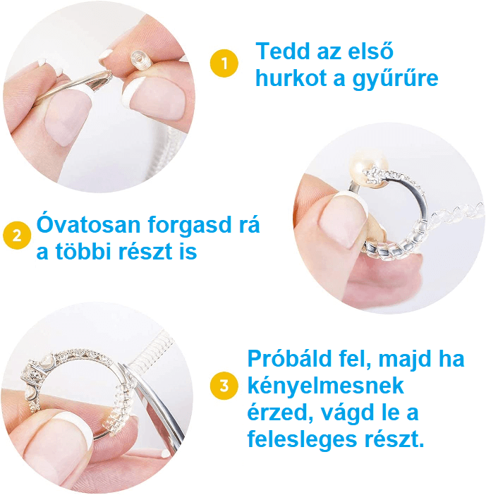 Die Anbringung ist super einfach und schnell erledigt. Einfach auf den Ring drehen, den Überschuss abschneiden und fertig! Keine Sorge mehr, dass er vom Finger rutscht und verloren geht.