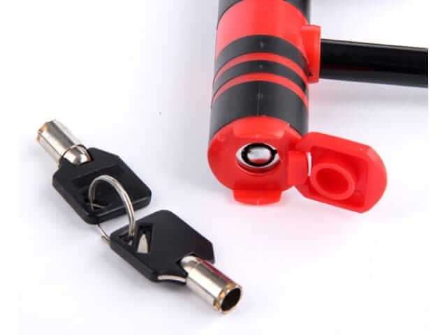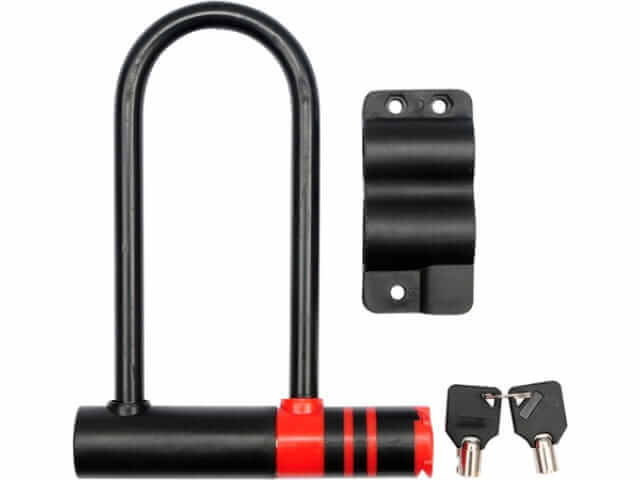 Das U-Schloss gehört zu den sichersten Schlössern, denn es reicht nicht, wenn Diebe nur einen Schenkel durchtrennen, sie müssten beide durchtrennen, um das Fahrrad zu stehlen. Dank des Materials des Schlosses ist es jedoch nicht so leicht zu durchtrennen, denn es besteht aus Stahl und ist mit Gummi überzogen. Du kannst es auch mit der mitgelieferten Halterung am Fahrradrahmen befestigen. Am Schlüsselloch befindet sich ein aufklappbarer Kunststoffschutz, damit kein Schmutz eindringt und keine unerwarteten Unannehmlichkeiten verursacht.