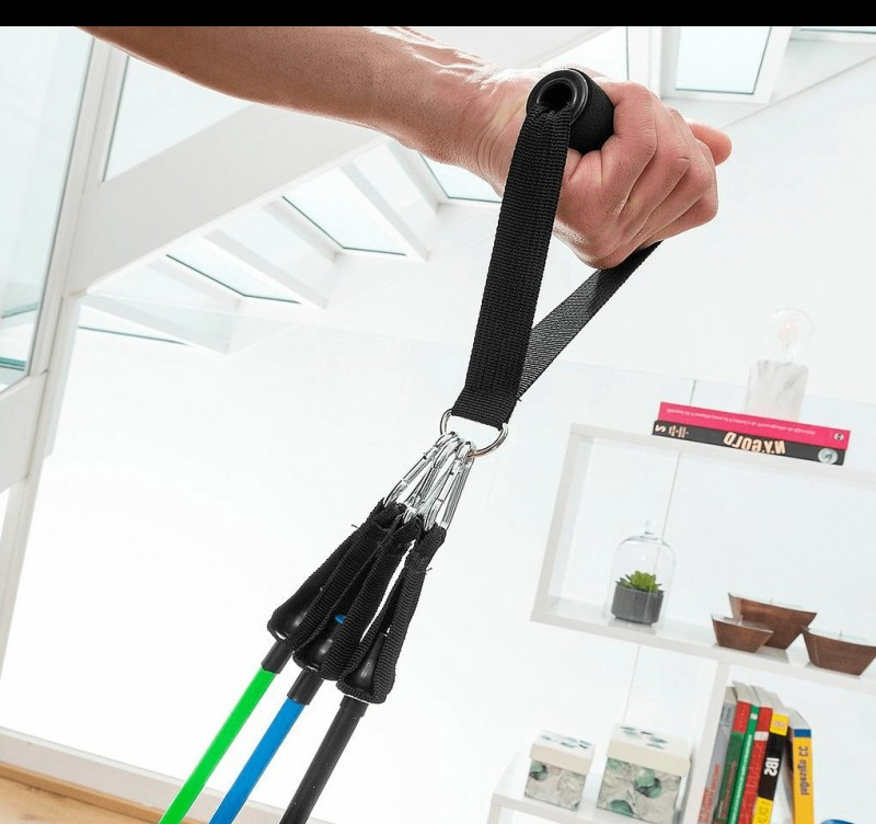 Die Bänder können einzeln oder zusammen verwendet werden. Für den bequemen Gebrauch sind sie mit Schaumstoffgriffen ausgestattet und verfügen über Karabinerhaken aus Metall für optimalen Halt und Griffigkeit.