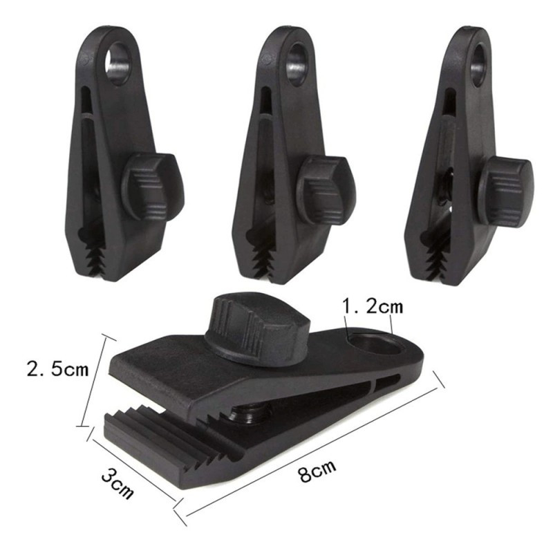 Dank der zahnförmigen und schraubbaren Konstruktion der Clips hält die Plane perfekt, ohne zu verrutschen oder beschädigt zu werden. Leicht, einfach zu transportieren, der Lochdurchmesser beträgt 1,2 cm, sodass die Schnur leicht befestigt werden kann.