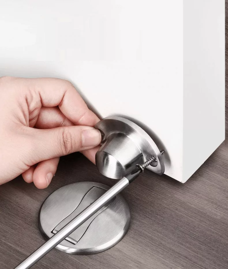 Dieser magnetische Türstopper aus rostfreiem Stahl hält die Tür sanft offen und verhindert Kollisionen zwischen Tür und Griff. Der Magnet hält die Tür sicher offen. Das metallische Design des Türstoppers ist sehr elegant, modern und luxuriös, und dank seiner vielen Farbvarianten passt er zu jedem Bodenbelag.