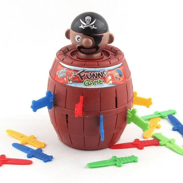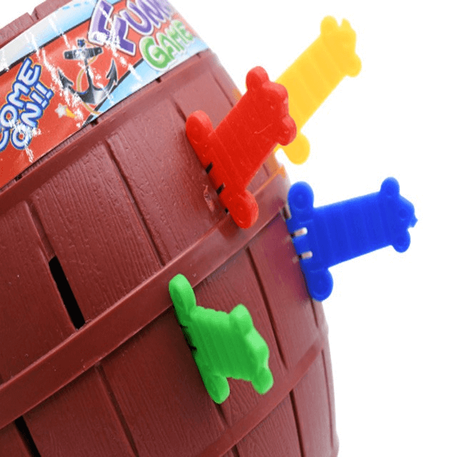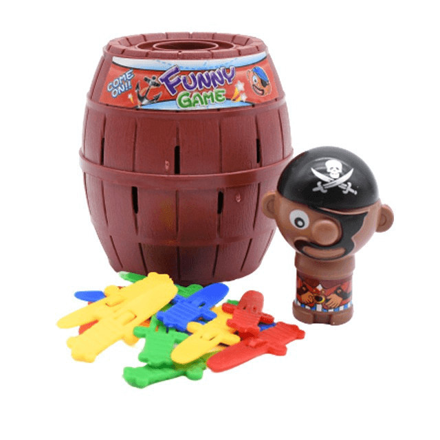 Die Spielregeln sind kinderleicht: Jeder wählt eine Farbe, dann setzt ihr euch um das Fass und steckt die Schwerter hinein. Wer den Piraten aus seinem Versteck springen lässt, verliert. Der Gewinner ist derjenige, der alle seine Schwerter platzieren kann, ohne dass der Pirat herausspringt. Das Spiel wird für 2 bis 4 Personen empfohlen. Unter 4 Jahren ist die Nutzung des Spiels nicht empfohlen.