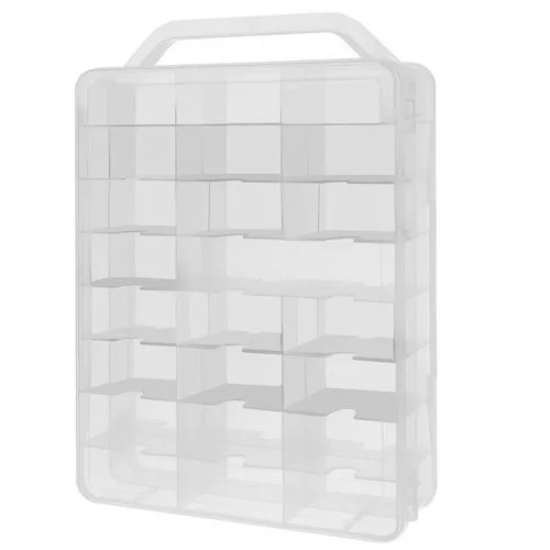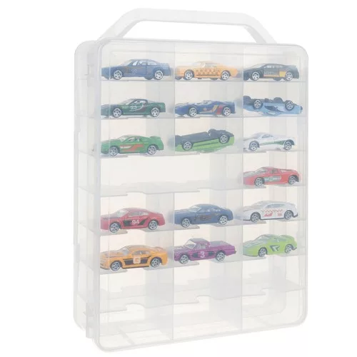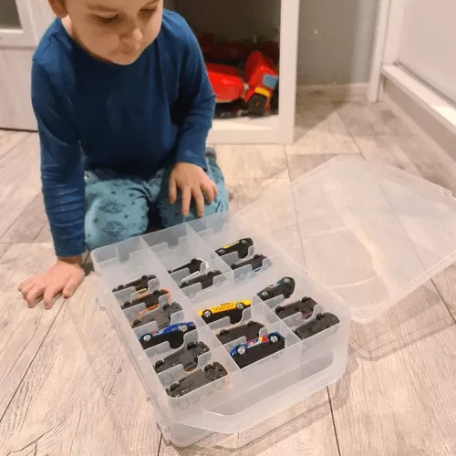 Organisiere deine Lieblingsspielzeugautos, damit du immer weißt, wo sie sind, und nimm sie leichter mit in den Urlaub oder zu deinen Freunden. Die Box verfügt über 46 Fächer in kleinen und großen Größen. Besonders praktisch: Sie lässt sich von beiden Seiten öffnen, mit jeweils 23 Fächern pro Seite. Der Verschluss erfolgt mit einem starken Clip. Das Produkt ist durchsichtig, sodass du schon vorher sehen kannst, wo sich das gesuchte Spielzeug befindet, bevor du die Box öffnest.