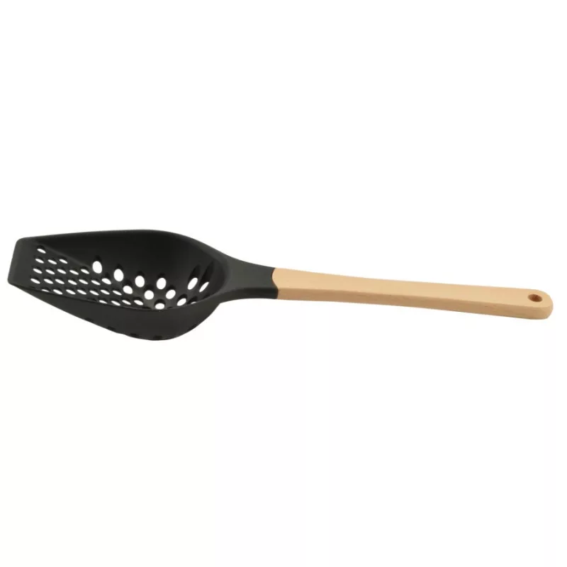 Durchlöcherter Servierlöffel für Beilagen – Kartoffeln, Reis, Spätzle, Salat – ohne Flüssigkeit. Der Löffelteil besteht aus Silikon, das hitzebeständig bis 240 Grad ist. Mit einem Holzgriff ausgestattet, der sich nicht wie Metallgriffe erhitzt. Dank des praktischen Designs kann er aufgehängt werden.