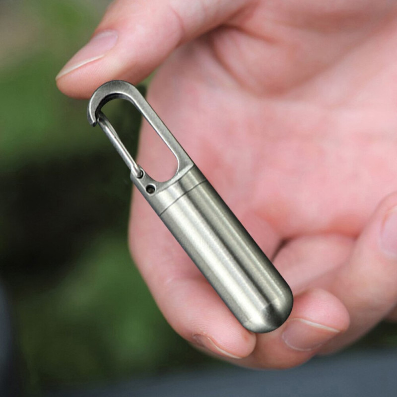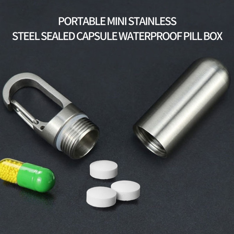 Der Tablettenhalter in der Tasche verfügt über eine Gummi-O-Ring-Dichtung zwischen dem Gehäuse und dem Schraubdeckel, die ihn luft- und wasserdicht macht, sodass die Tabletten trocken bleiben.