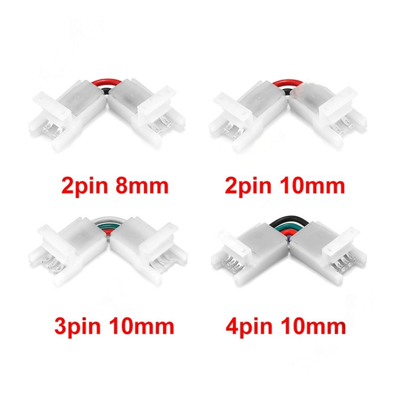 Mit den neuen LED-Streifenanschlüssen kannst du deine LED-Streifen jetzt ganz einfach und schnell verbinden, ohne löten zu müssen! Die Anschlüsse sind in den Varianten 2-polig 8mm, 2-polig 10mm, 3-polig 10mm und 4-polig 10mm erhältlich, und das in Paketen zu je 10 Stück, sodass für jeden die passende Größe dabei ist. Dank unserer L-förmigen Anschlüsse ist auch das Anschließen in Ecken kinderleicht.