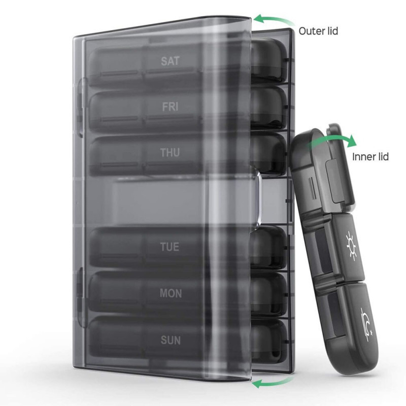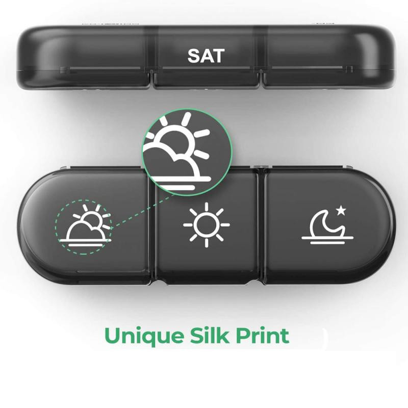 Die Tablettenbehälter verfügen über drei Fächer pro Tag, sodass du deine morgendliche, mittägliche und abendliche Dosis separat einteilen kannst. Insgesamt gibt es 7 Behälter, sodass du eine ganze Woche im Voraus planen kannst.