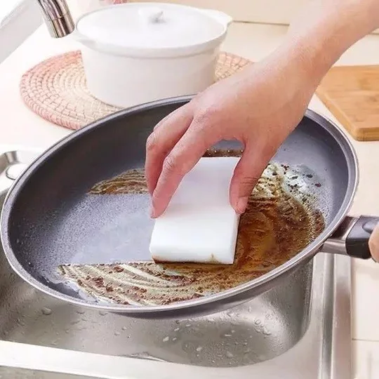 Der magische Schwamm ist wie ein Radiergummi, er nutzt sich beim Reinigen ab, aber das ist kaum sichtbar, sodass er lange dein treuer Begleiter beim Putzen sein kann. Wir empfehlen ihn für raue, harte Oberflächen, da er auf weicheren, empfindlichen Oberflächen winzige, unsichtbare Kratzer hinterlassen kann.