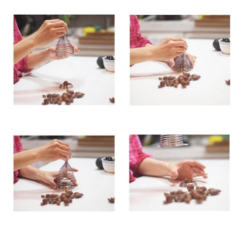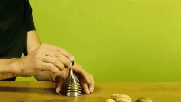 Dank der Federn erledigst du die Aufgabe mühelos. Zudem zerbricht die Nuss im Moment der Federkontraktion, was verhindert, dass die Schalenfragmente in deiner Umgebung verstreut werden.