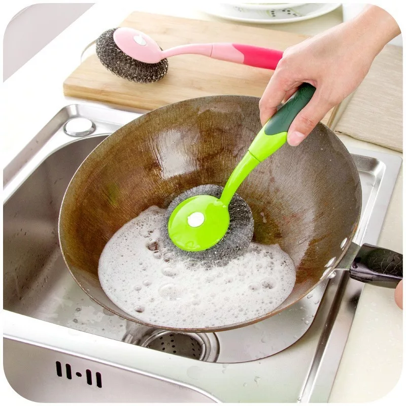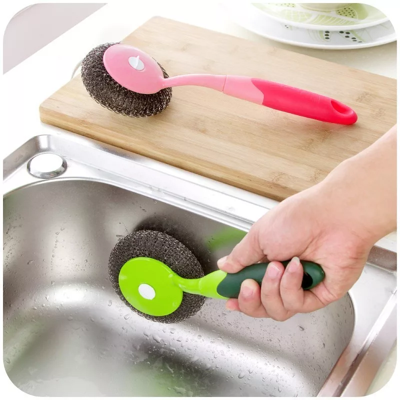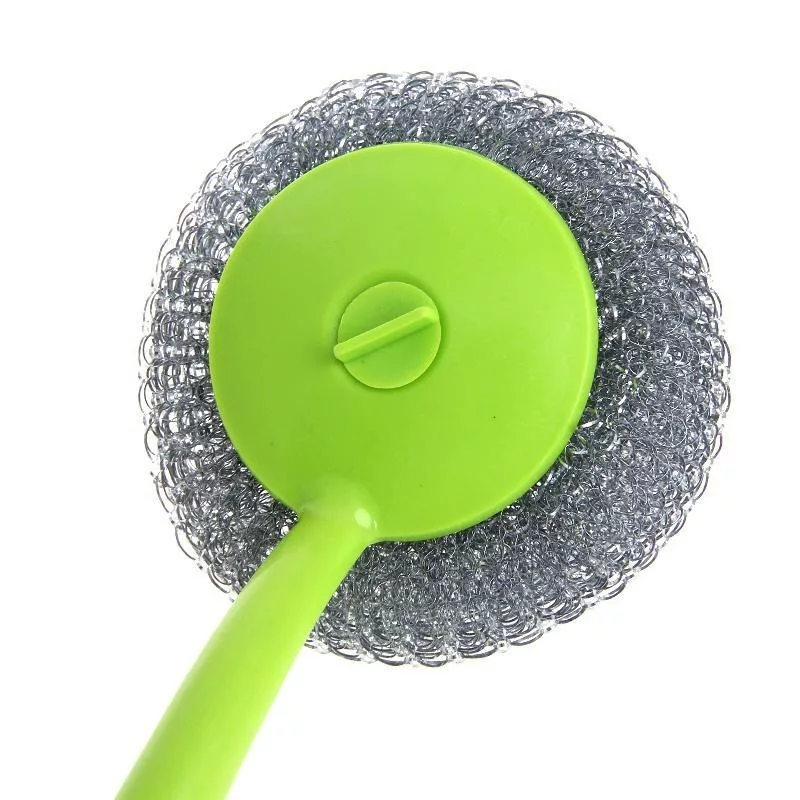 Herkömmliche Metalltopfreiniger machen das Spülen schwer. Ihre Fasern lösen sich ständig, und sie sind schwer zu greifen. Mit der langstieligen Drahtbürste wird das Schrubben von Tellern, Pfannen und Schneidebrettern zum Kinderspiel.