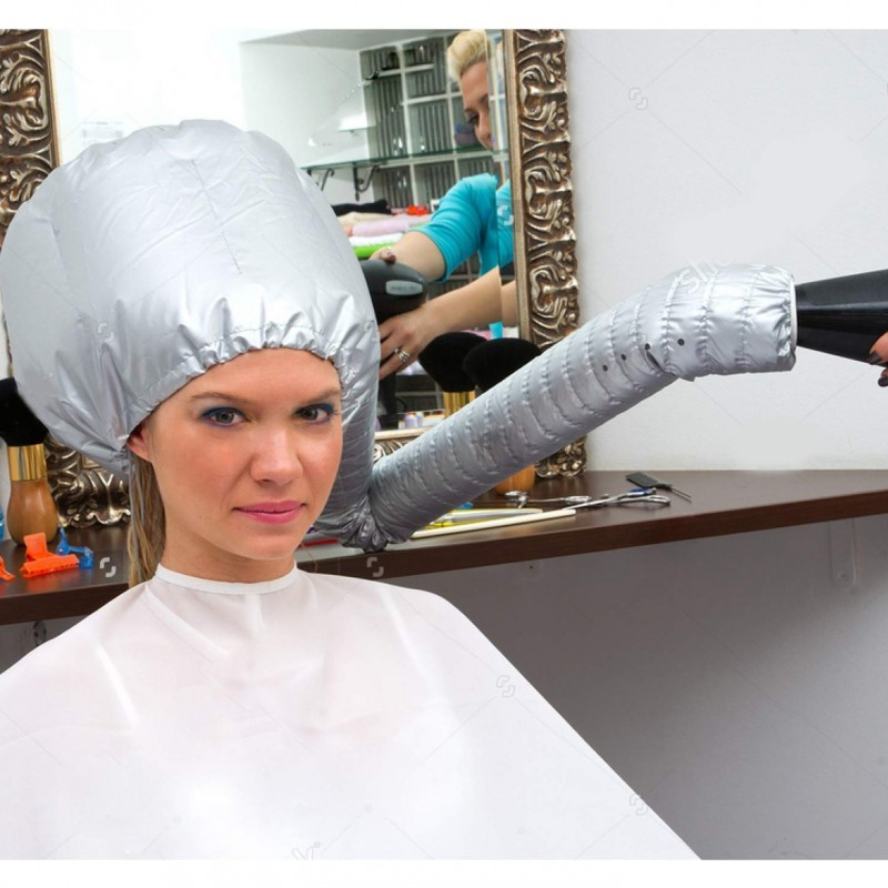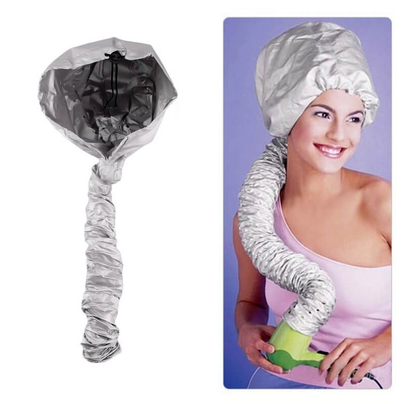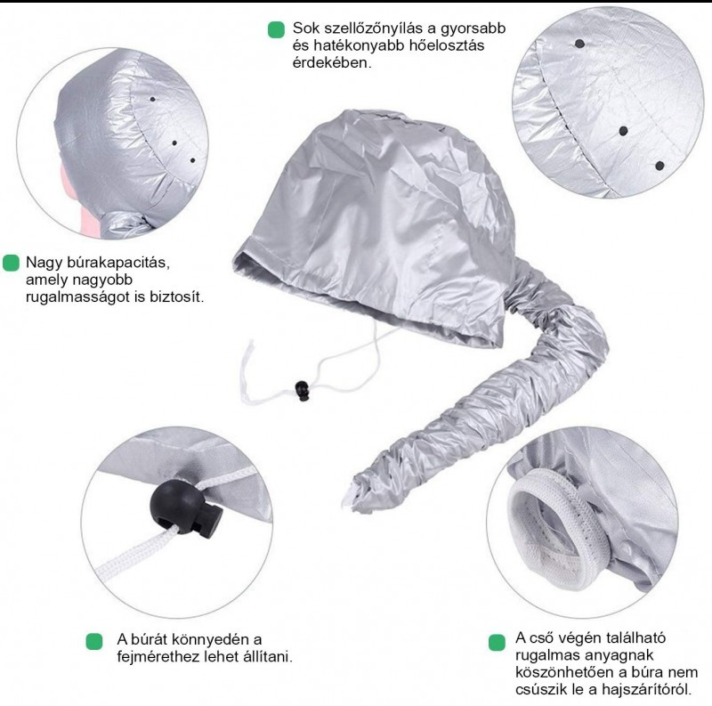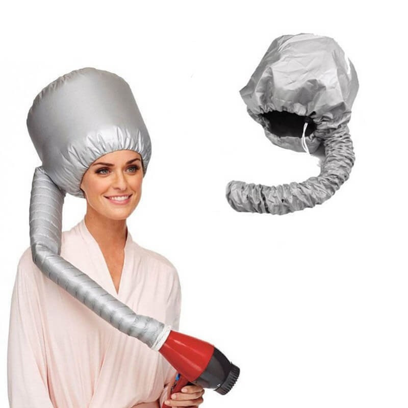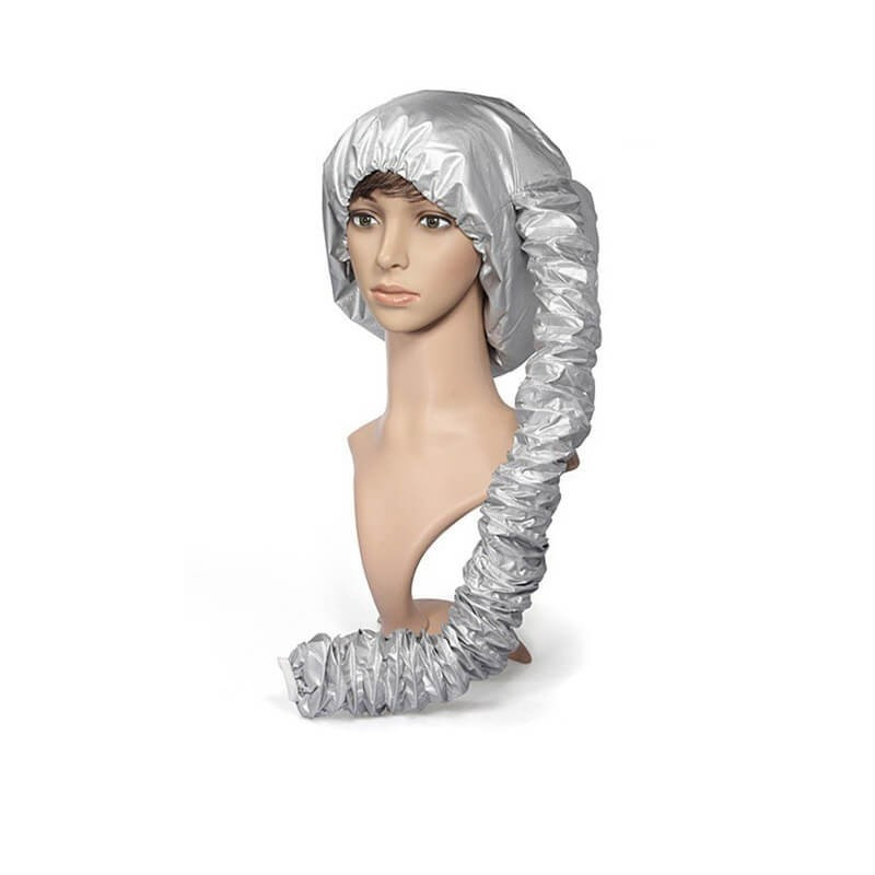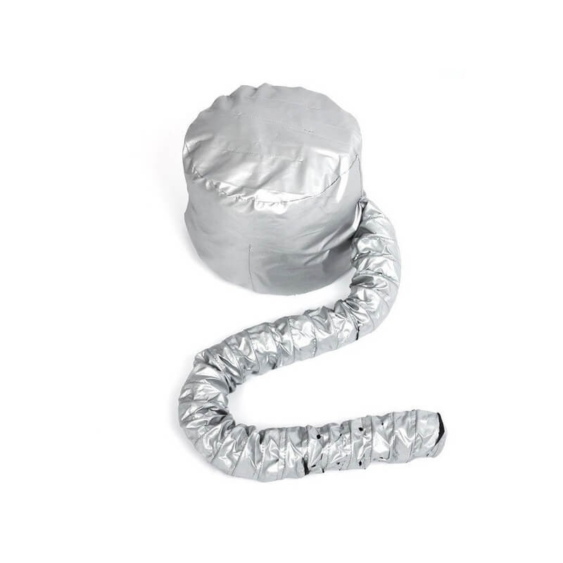 Alles, was du tun musst, ist, den Schlauch des Aufsatzes auf deinen Haartrockner zu ziehen. Dank der flexiblen Öffnung geht das ganz einfach. Danach ziehst du den Aufsatz über deinen Kopf und das Trocknen kann beginnen.