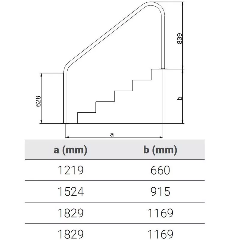 • Länge „a“: 1219 mm