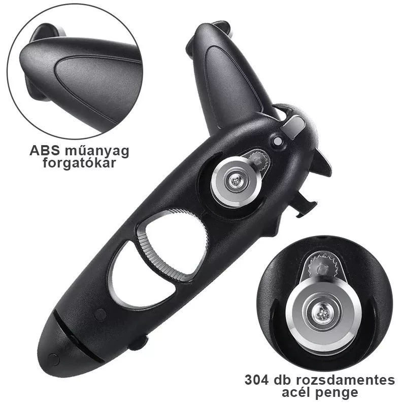 Das Gadget ist nicht nur ideal zum Öffnen von Konserven, sondern verfügt auch über Öffner für Bier, Wasserflaschen und Plastiktüten.