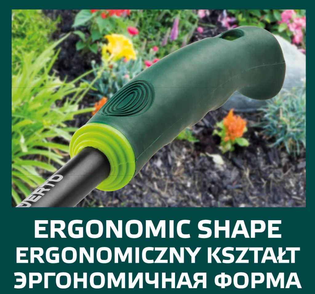 Die VERTO Hacke (Art.-Nr. 15G410) hat eine Länge von 340 mm. Ein äußerst nützliches Werkzeug für die Gartenarbeit. Die Klinge besteht aus robustem Stahl, der gegen Verformung beständig ist. Der ergonomisch geformte, gummierte Griff liegt gut in der Hand und rutscht nicht, was den Arbeitskomfort erhöht. 340 mm lange Gartenhacke in Herzform, Stahlwerkzeug, Griff aus zwei Materialien.