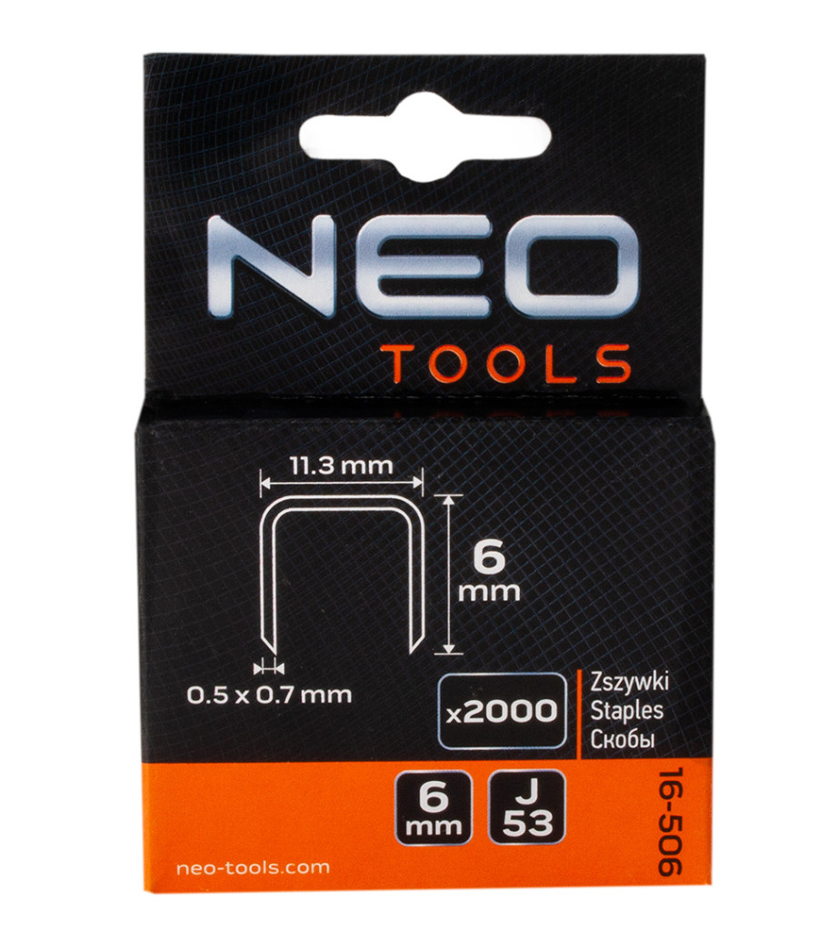 NEO TOOLS Heftklammern 6mm, Typ J, 2000 Stk. 16-506