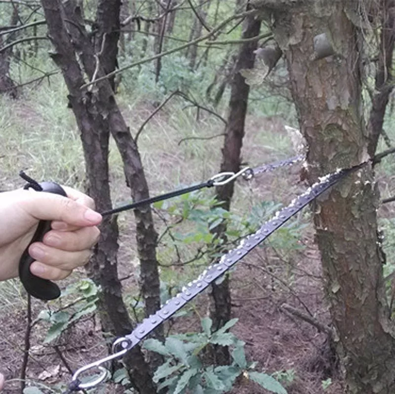 • Diese Handkettensäge ist ein praktischer Begleiter beim Wandern oder bei der Gartenarbeit.