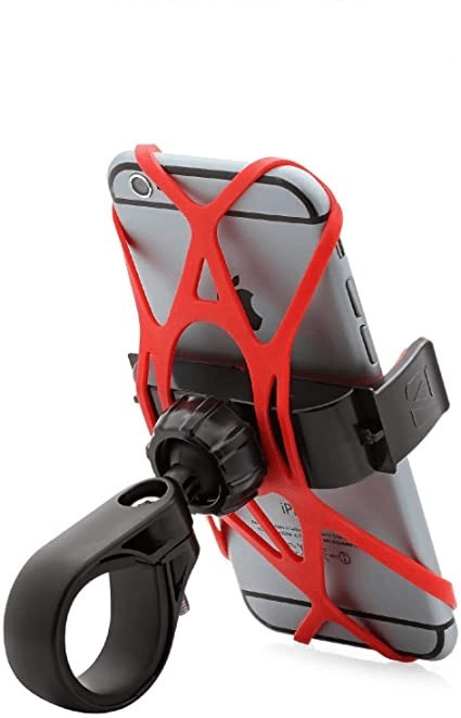 Diese Halterung lässt sich ganz einfach an deinem Fahrrad befestigen. Dein Telefon wird sicher durch die Silikonbänder gehalten.