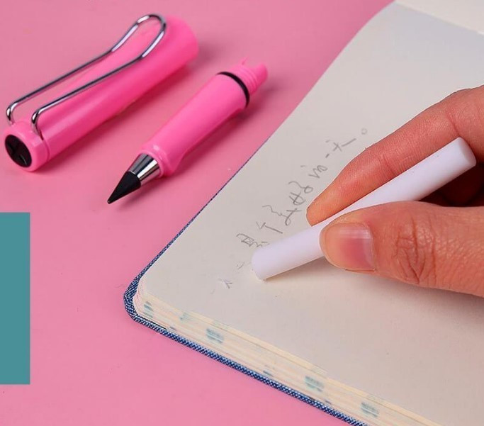 Einen tintenlosen Stift mit einem Radiergummi-Einsatz im Inneren.