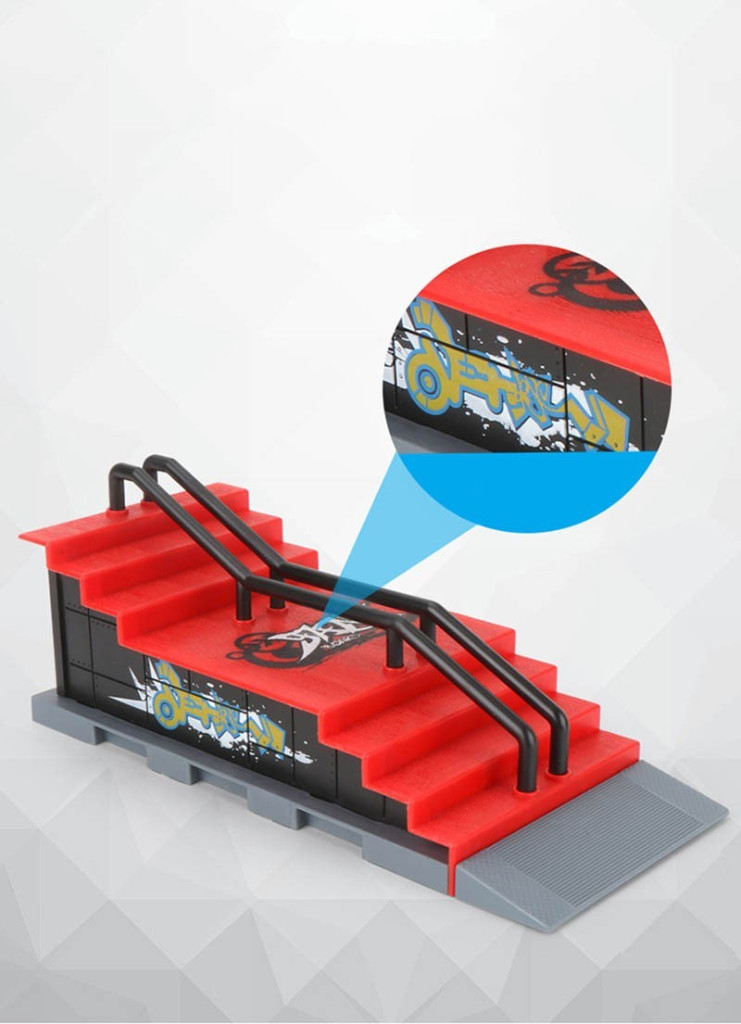 Jetzt kannst du deine Fingerboards auf dieser extremen Bahn ausprobieren! Rutsche das Treppengeländer hinunter oder den Abhang hinab! Wenn du neu in dieser Welt bist, lass deine Finger die Kontrolle übernehmen. Aber wenn du schon lange ein Fan des Fingerboardings bist, kannst du deine bestehenden Boards auf diesen Rampen herausfordern!