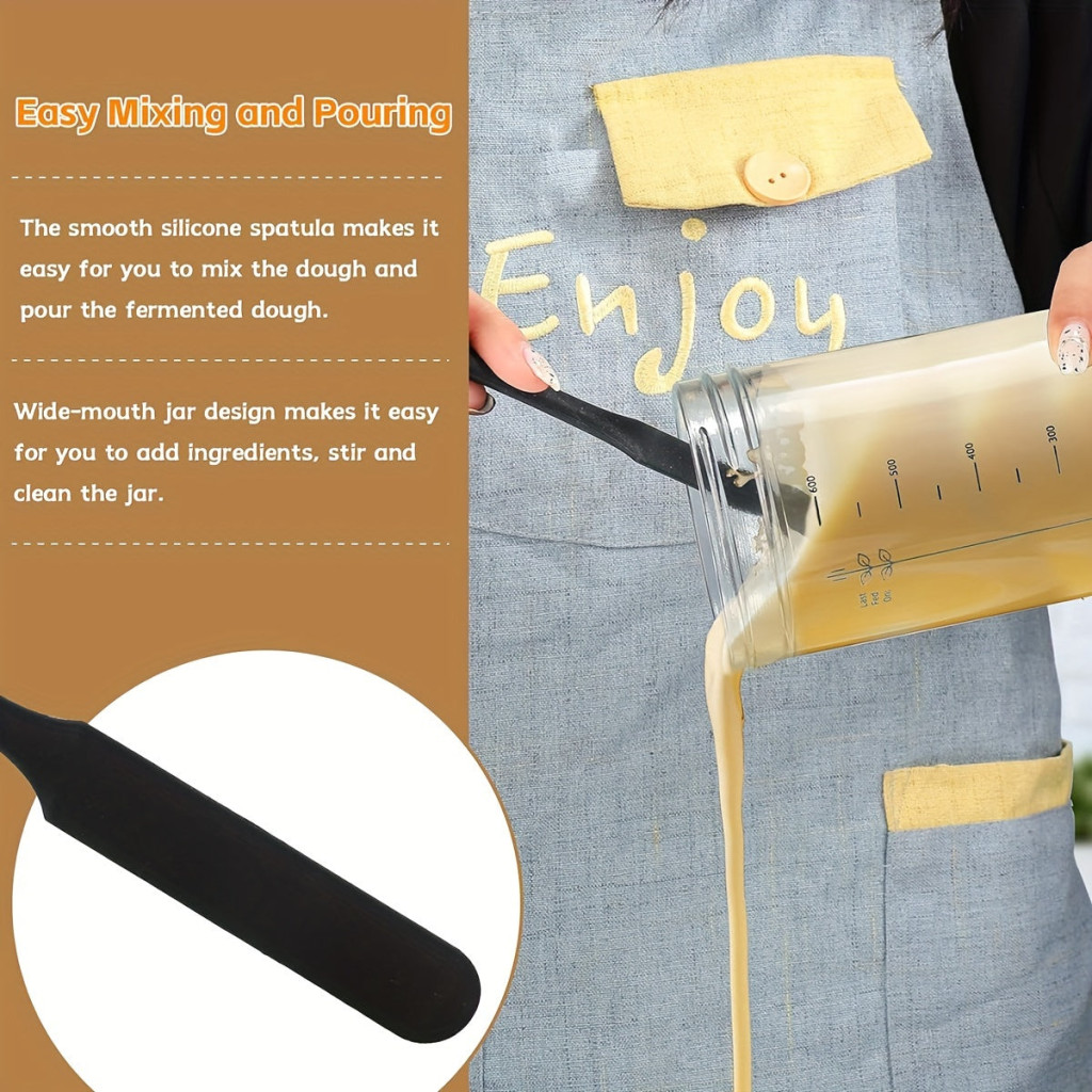 Sauerteig-Starterset, 24oz Glasbehälter mit Datumsband, Thermometer, Stoffbezug und Metalldeckel