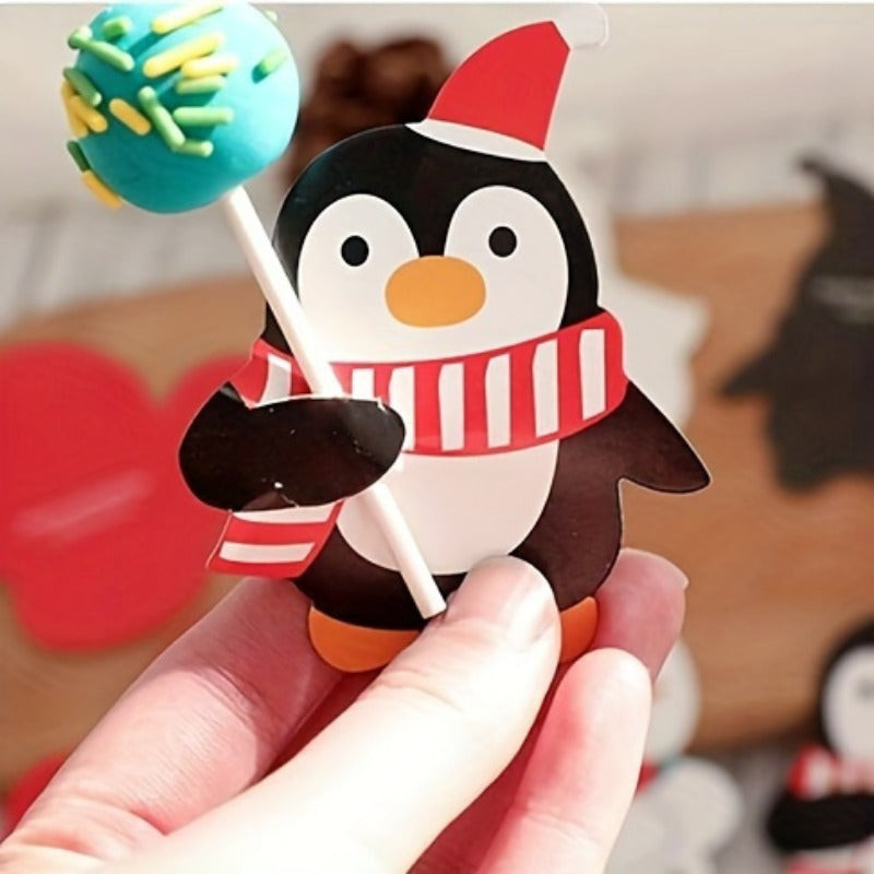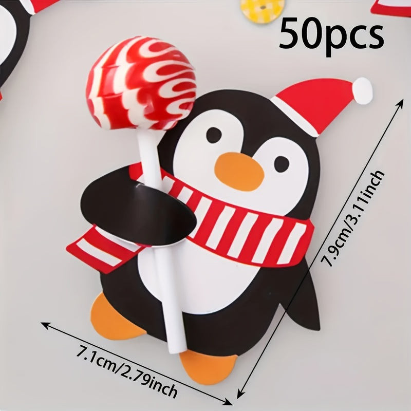100er-Pack Weihnachts-Lutscherhalter-Karten - mit Weihnachtsmann, Pinguin und Schneemann-Motiven